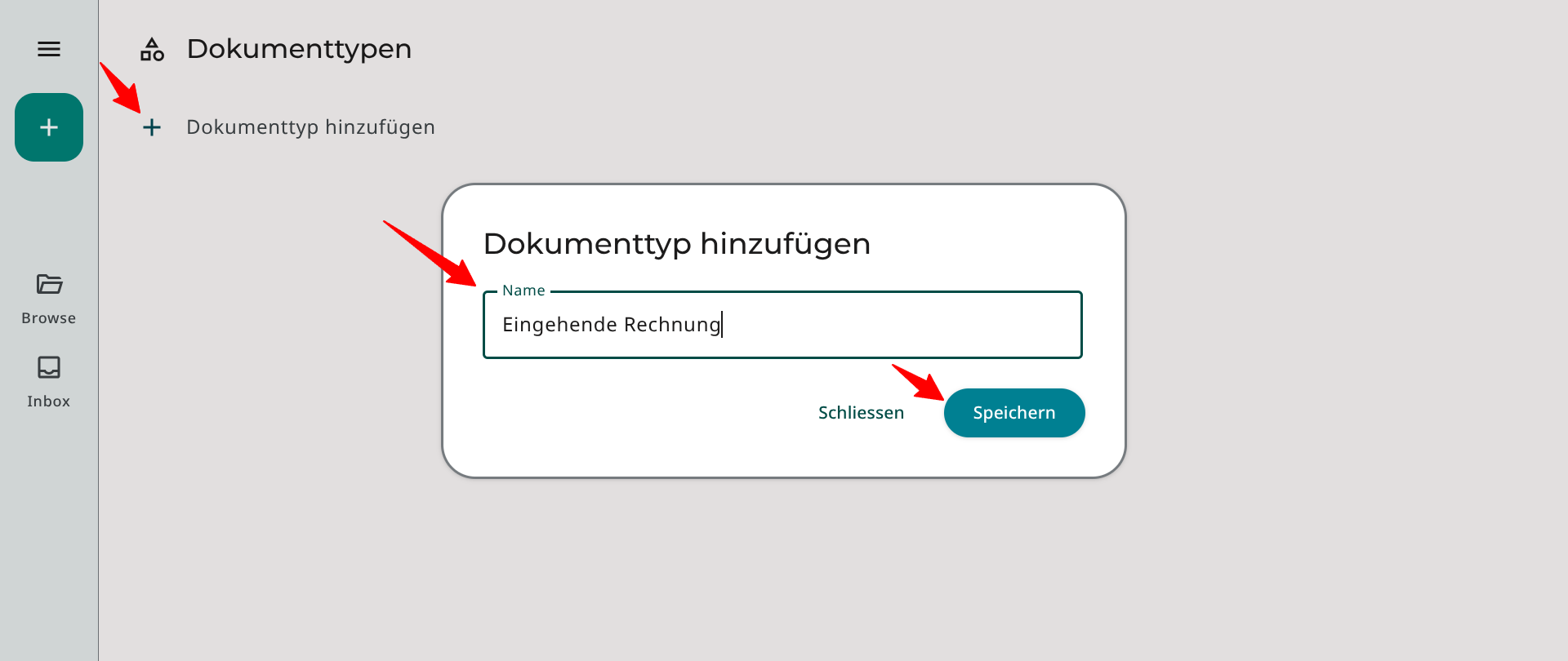 Next, you need to create your first document type. In this guide, we will create the document type «Incoming Invoice».