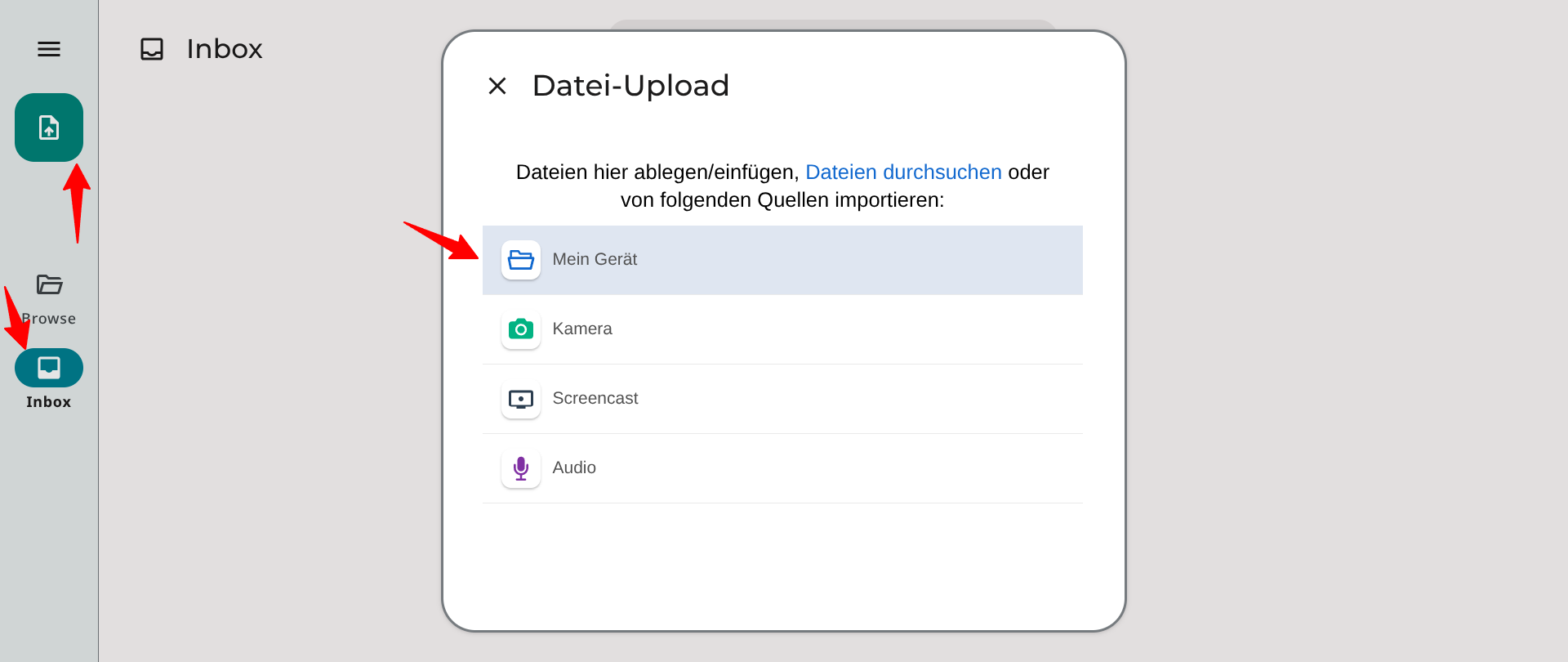 To do this, switch to the «Inbox» via the left sidebar and press the button to upload documents.